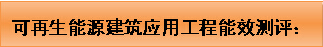 可再生能源建筑應(yīng)用工程能效測評是指對地源熱泵系統(tǒng)、太陽能熱利用系統(tǒng)、太陽能光伏系統(tǒng)進(jìn)行指標(biāo)評價(jià)、性能合格判定和性能分級評價(jià),以及節(jié)能效益、環(huán)境效益、經(jīng)濟(jì)效益評估。
