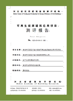現(xiàn)已開展承德、南宮、寧晉、大名、平泉、任縣、清河、安平等多個(gè)國家級可再生能源建筑應(yīng)用示范項(xiàng)目、示范縣市的300余項(xiàng)工程的測評,測評技術(shù)在國內(nèi)處于領(lǐng)先水平。
