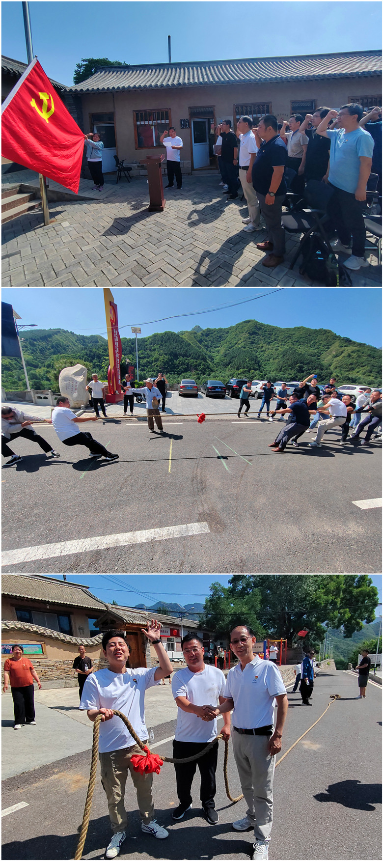 結(jié)構(gòu)所黨支部與顧家臺(tái)黨支部開(kāi)展聯(lián)合黨日活動(dòng)。顧家臺(tái)村支部書(shū)記顧錦成同志帶領(lǐng)全體黨員在黨旗下莊嚴(yán)宣誓,重溫入黨誓詞。隨后,兩個(gè)支部的黨員開(kāi)展拔河聯(lián)誼活動(dòng)。