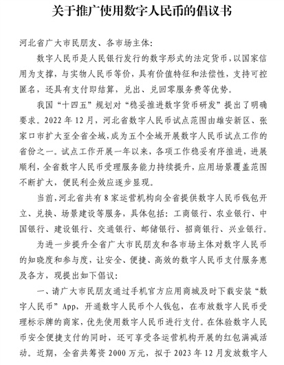 轉(zhuǎn)發(fā)“關(guān)于推廣使用數(shù)字人民幣的倡議書”